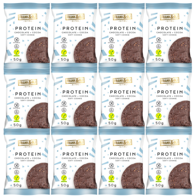 Zestaw składa się z 12 opakowań miękkich ciastek FRANK&OIL wegańskich o smaku kakao czekolada