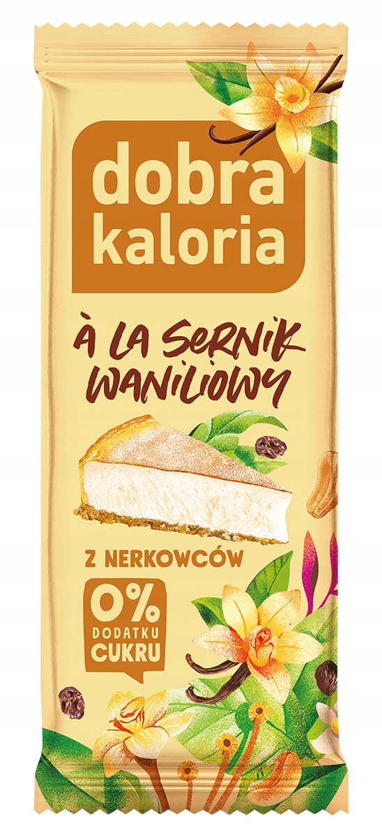 W 100% naturalny batonik z orzechów nerkowca, w smaku przypominający sernik waniliowy. To zdrowa przekąska bez dodanego cukru (zawiera jedynie naturalnie występujące w składnikach cukry), idealna gdy lubimy przekąsić coś słodkiego.