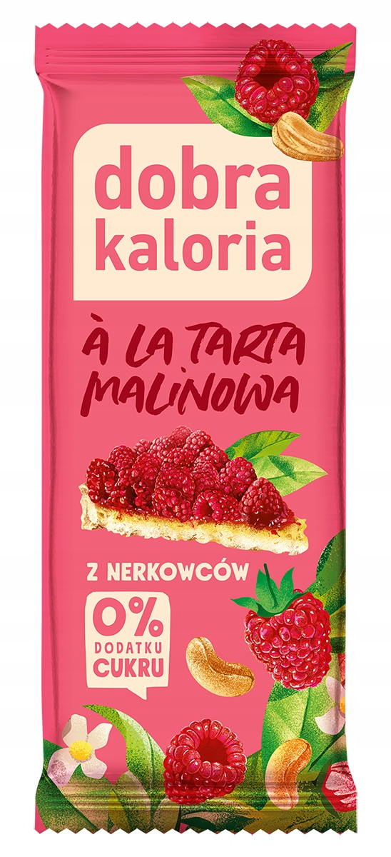 Batonik z orzechów nerkowca o smaku tarty malinowej z dodatkiem rodzynek, daktyli i chrupek z komosy ryżowej. Smaczna i poręczna przekąska do wzięcia ze sobą do pracy, szkoły, na trening czy wycieczkę.