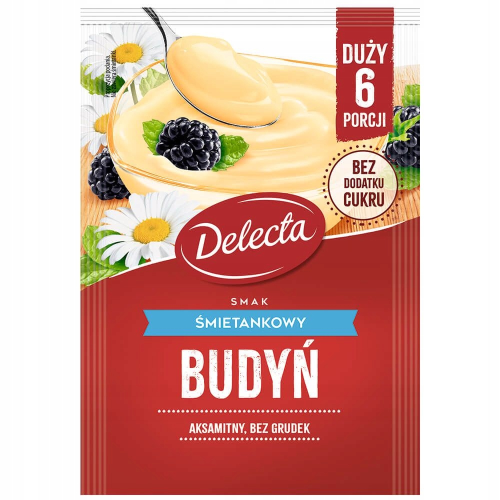 Budyń BEZ CUKRU duży o smaku śmietankowym 64g. DELECTA aksamitny w proszku