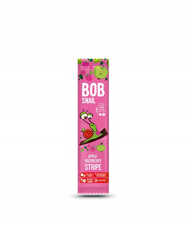 Bob Snail jabłko-malina to naturalne przekąski owocowe od producenta Eco-Snack. Do ich przygotowania wykorzystano owoce i nic więcej! W produktach Bob Snail nie znajdziesz środków konserwujących, barwników oraz dodawanego cukru. Ślimak Bob to produkty odpowiednie dla wegan. Przekąska jabłkowo-malinowa składa się w 100% z jabłek i malin. Jabłka są źródłem cennego błonnika pokarmowego, który usprawnia pracę przewodu pokarmowego. Pobudza perystaltykę jelit i zapobiega nowotworom jelita grubego. Ponadto, jabłka zawierają w swoim składzie kwas ursolowy, składniki mineralne (potas, magnez, żelazo, krzem i wapń), kwercetyne, a w pestkach znajduje się witamina B17. Maliny są bogatym źródłem polifenoli, pośród których dominują: elagotaniny oraz antocyjany. Dodatkowo w swoim składzie zawierają kwasy organiczne w tym fenolowe oraz flawonole