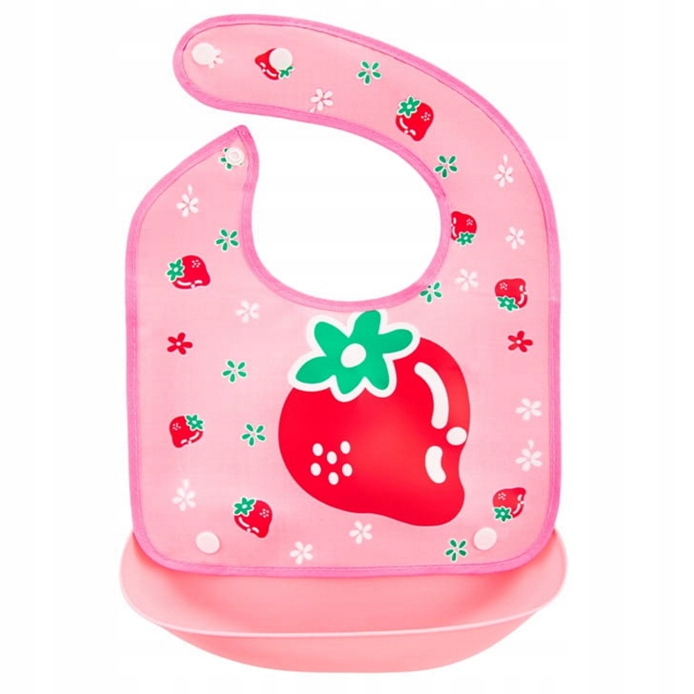 śliniak z odpinaną kieszonką ceratowy Truskawka eva BOCIOLAND różowy