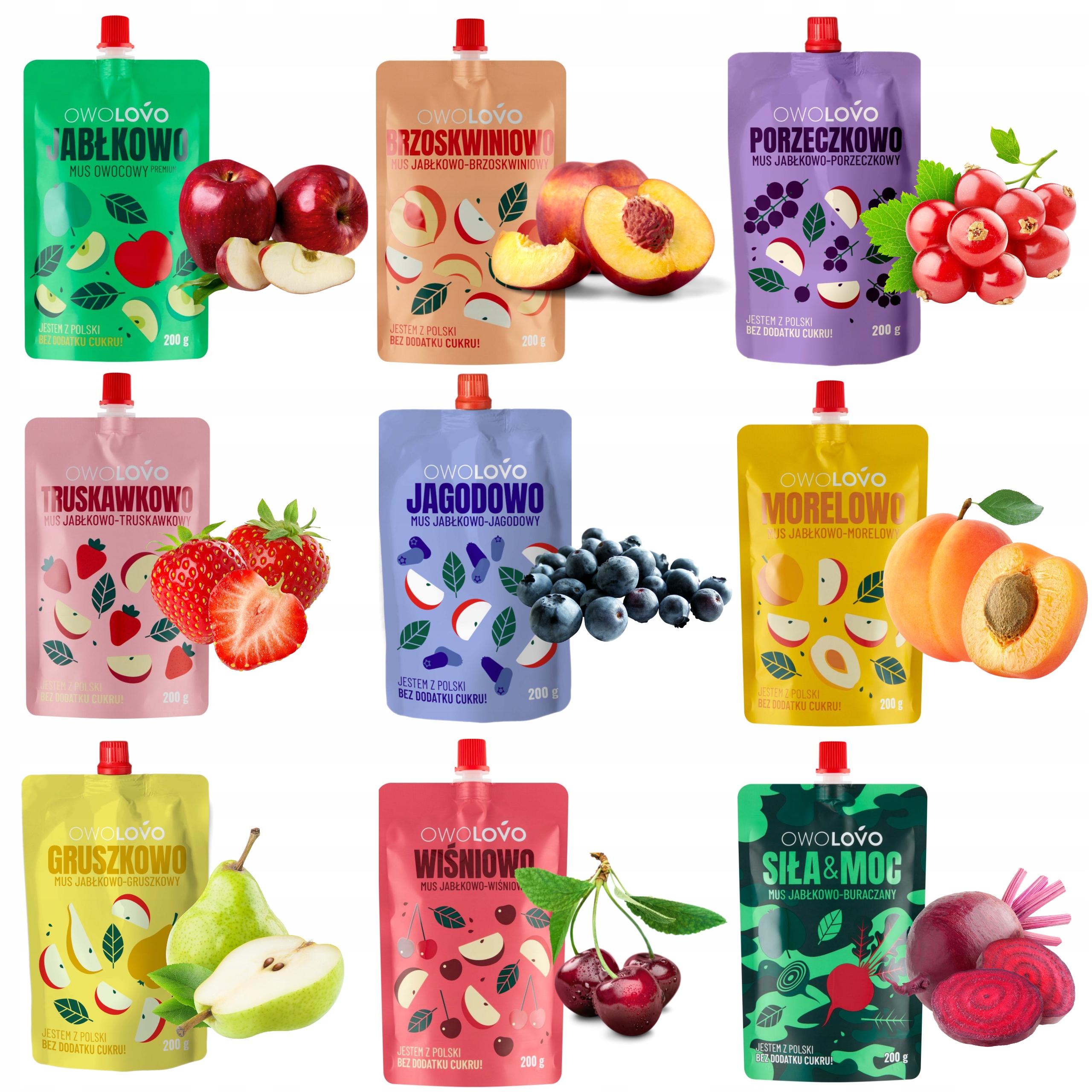 Zestaw Mus OWOLOVO Wszystkie smaki MIX 9x 200g.