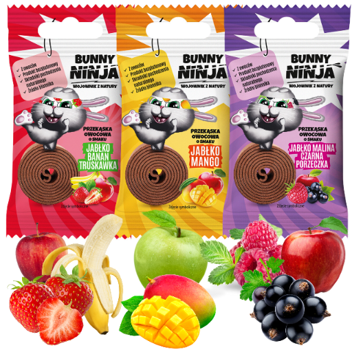 ❤️ Bunny Ninja nie sprowadza owoców z nieznanych źródeł. Owoce wykorzystywane do przygotowania przekąsek nie są pryskane żadnymi substancjami w celu zachowania ich świeżości. Do owoców nie dodaje się cukru, ani żadnych substancji słodzących. Od razu, po zbiorze owoce są myte, krojone i blendowane, przekładane do pojemników i pasteryzowane po to, aby zachowały swoją świeżość.